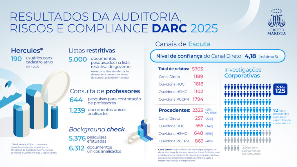 Os resultados alcançados evidenciam o avanço dessas frentes e reforçam a importância dos pilares do Programa de Integridade Marista para a sustentabilidade institucional.